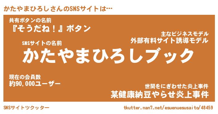 | ツイッター | かたやまひろしさんのツイッターID『namakemono_star』 |