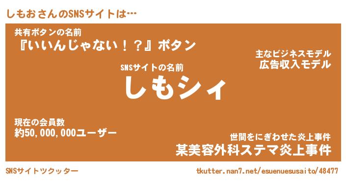 | 男性向けラノベタイトル風あだ名 | 『しもおの憂鬱』 |
