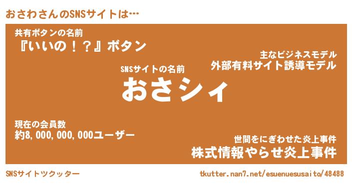 | ファンタジー風あだ名 | 『オサフェル』『エターナルオサワー』 |