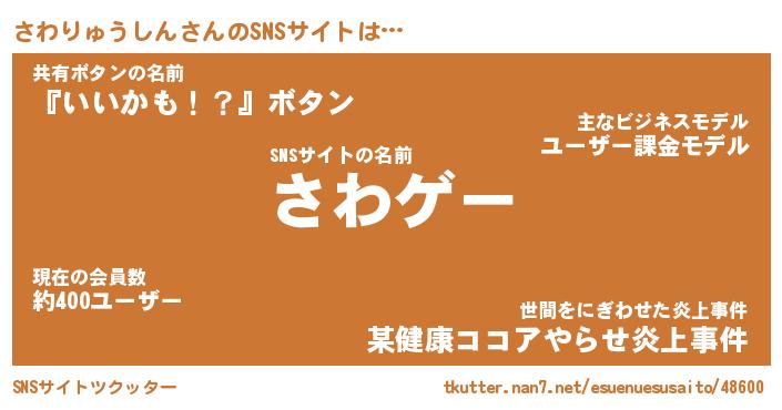 | 男性向けラノベタイトル風あだ名 | 『さわりゅうしんの憂鬱』 |