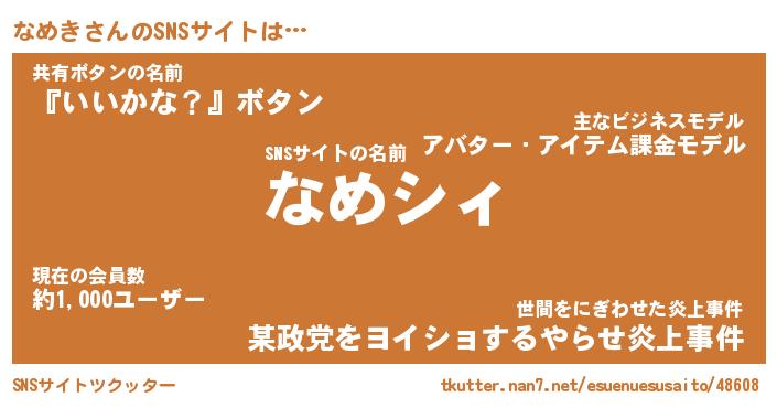 | ファンタジー風あだ名 | 『ナメフェル』『エターナルナメキー』 |