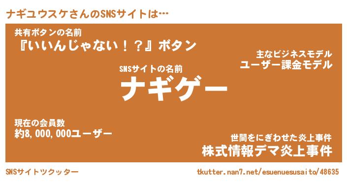 | 肩書あだ名 | 『ナギユウスケ店長』『ナギユウスケ校長』 |