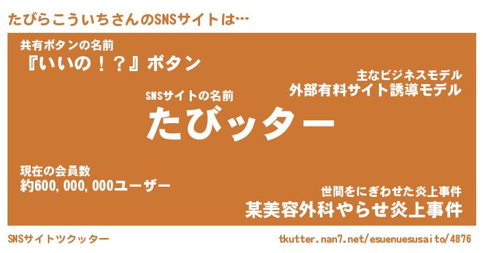 | 胡散臭い通販商品みたいなあだ名 | 『億万長者になれる水晶球…その名も「たびらこういち」』 |