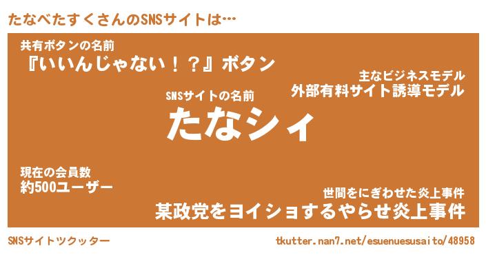 | ヘコむあだ名 | 『たなっふぃ~』『牛乳』『たなっぺ』 |