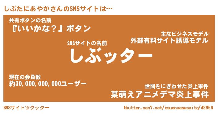 | 胡散臭い通販商品みたいなあだ名 | 『億万長者になれるブレスレット…その名も「しぶたにあやか」』 |