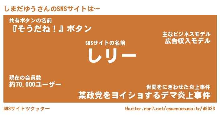 | 肩書あだ名 | 『しまだゆう御曹司』『しまだゆう団長』 |