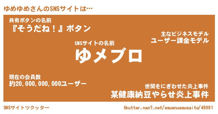 | ヘコむあだ名 | 『ゆめにー』『つくし』『ゆめ太郎』 |