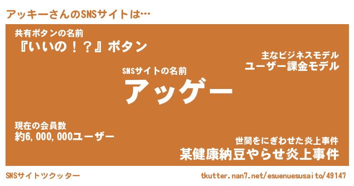 | 意味不明あだ名 | 『ペロリンアッキー』『永久保存アッキー』 |