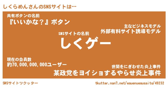 | 男性向けラノベタイトル風あだ名 | 『しくらめんの憂鬱』 |