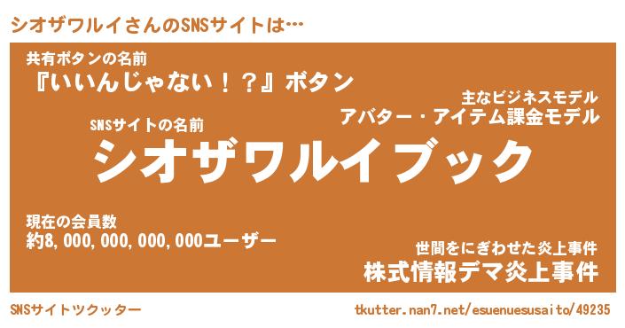 | 男性向けラノベタイトル風あだ名 | 『シオザワルイアートオンライン』 |