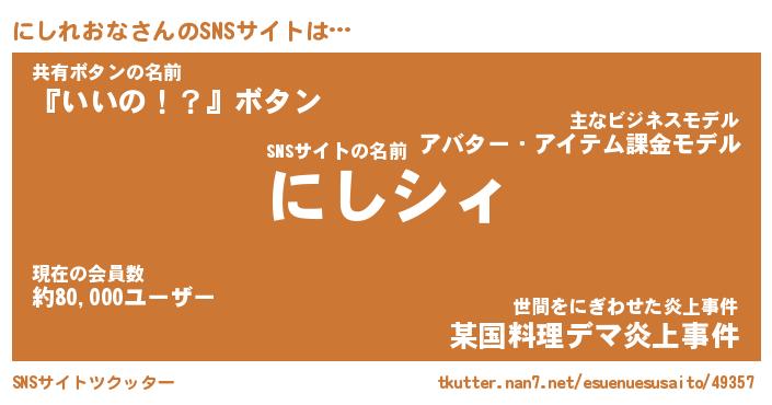 | ポケモン風あだ名 | 『ニシチュウ』『ニシレダネ』 |