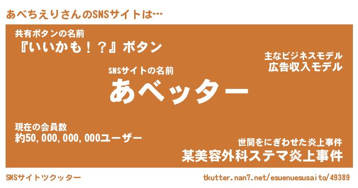 | 意味不明あだ名 | 『ペロリンあべちえり』 |