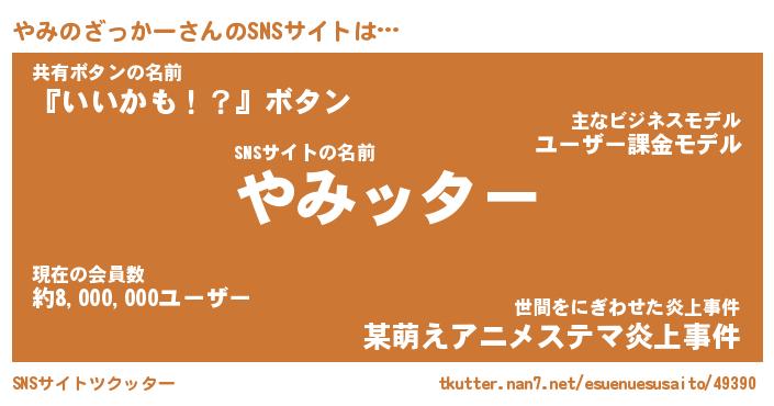 | 胡散臭い通販商品みたいなあだ名 | 『億万長者になれる霊験あらたかなお札…その名も「やみのざっかー」』 |