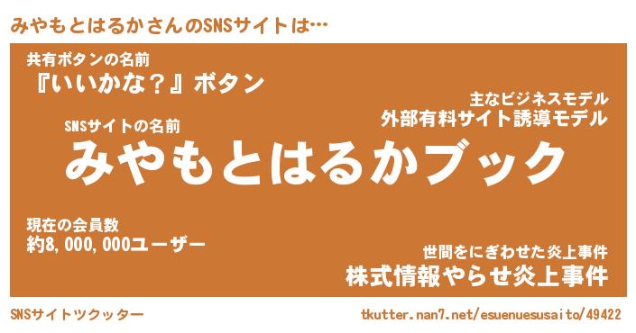 | 胡散臭い通販商品みたいなあだ名 | 『億万長者になれる水晶球…その名も「みやもとはるか」』 |