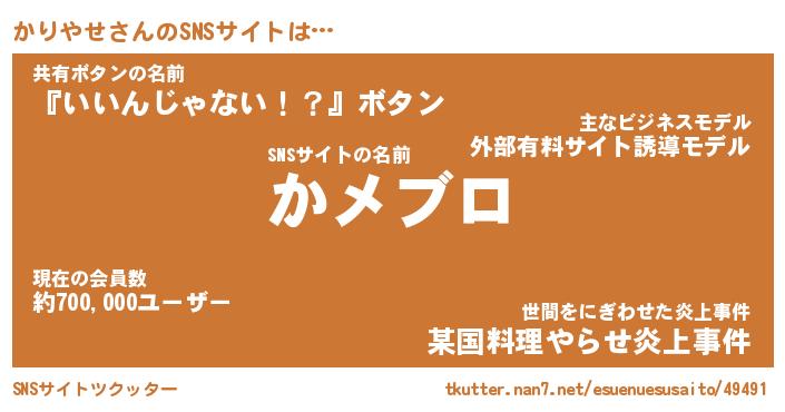 | 意味不明あだ名 | 『ペロリンかりやせ』『永久保存かりやせ』 |