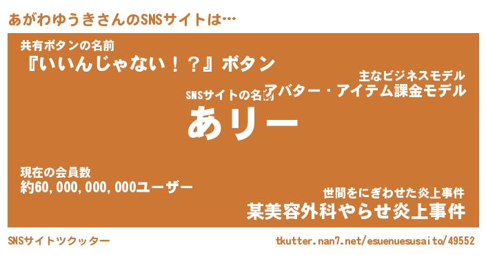 | ヒーロー風カッコイイあだ名 | 『スーパーアガワユウキ』『魔戒騎士アガ』 |