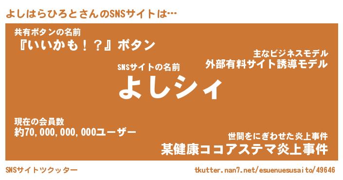 | 胡散臭い通販商品みたいなあだ名 | 『必ず成功するブレスレット…その名も「よしはらひろと」』 |