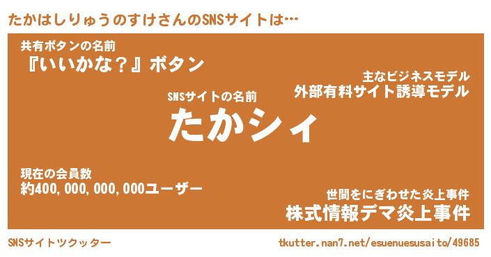 | 胡散臭い通販商品みたいなあだ名 | 『必ず成功する水晶球…その名も「たかはしりゅうのすけ」』 |