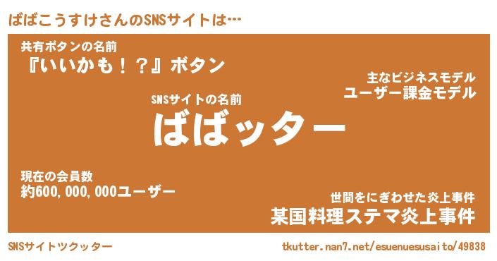 | 肩書あだ名 | 『ばばこうすけCEO』『ばばこうすけ団長』 |
