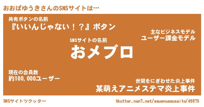 | 男性向けラノベタイトル風あだ名 | 『オオバユウキアートオンライン』 |