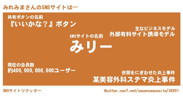 | 意味不明あだ名 | 『ペロリンみれみま』『永久保存みれみま』 |