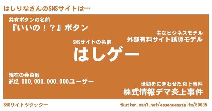 | 意味不明あだ名 | 『ペロリンはしりな』『永久保存はしりな』 |
