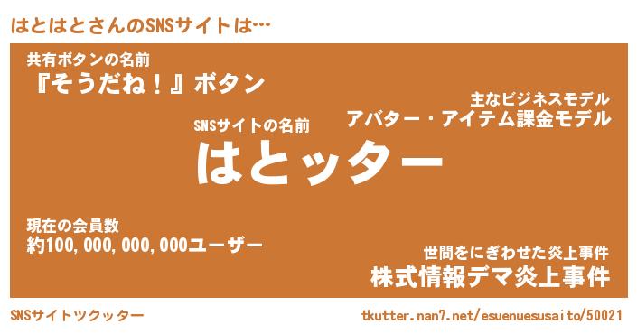 | 草はえルンゴwww …「ツクッター」 | 12月29日 07:12 |