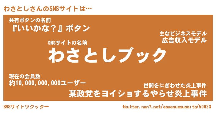 | 意味不明あだ名 | 『ペロリンわさとし』『永久保存わさとし』 |