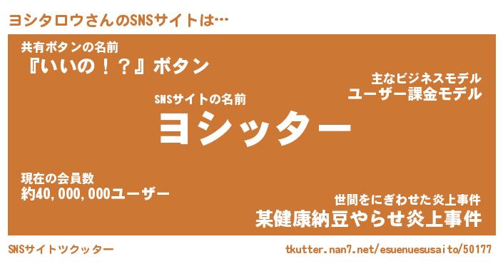 | ファンタジー風あだ名 | 『ヨシフェル』『エターナルヨシタロウー』 |