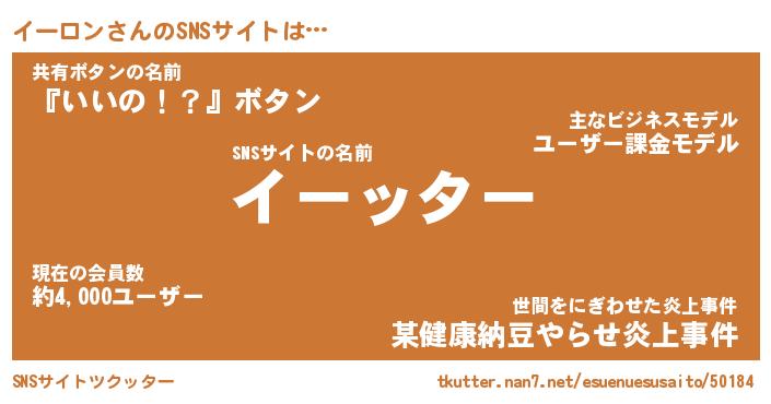 | 男性向けラノベタイトル風あだ名 | 『イーロンアートオンライン』 |