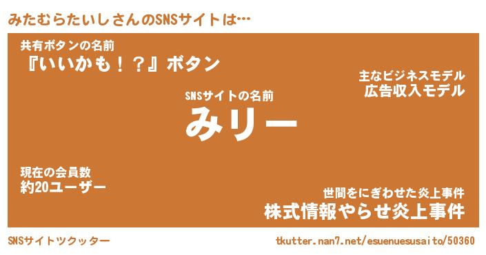 | 肩書あだ名 | 『みたむらたいし御曹司』 |
