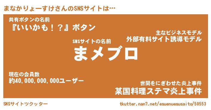 | 胡散臭い通販商品みたいなあだ名 | 『モテモテ間違いなし霊験あらたかなお札…その名も「まなかりょーすけ」』 |