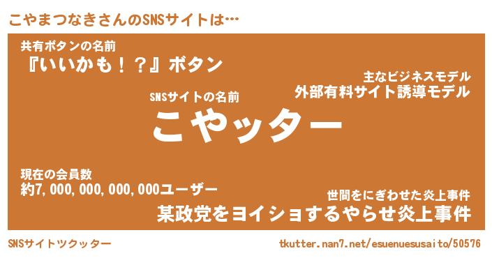 | 男性向けラノベタイトル風あだ名 | 『コヤマツナキアートオンライン』 |