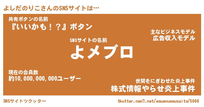 | 男性向けラノベタイトル風あだ名 | 『ヨシダノリコアートオンライン』 |