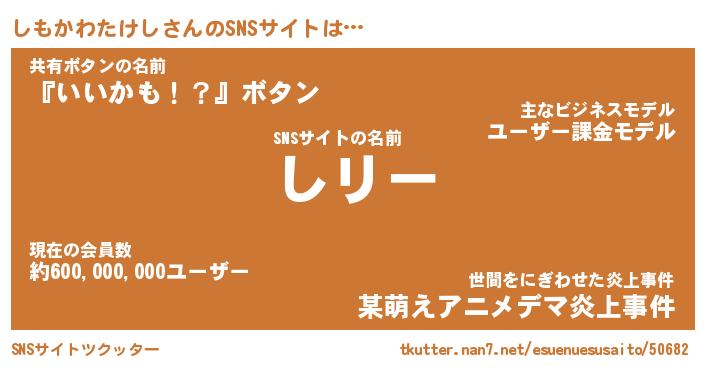 | 肩書あだ名 | 『しもかわたけし御曹司』 |