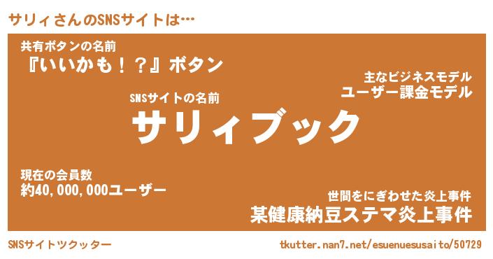 | ヘコむあだ名 | 『サリふぇ~』『酢こんぶ』『サリお』 |