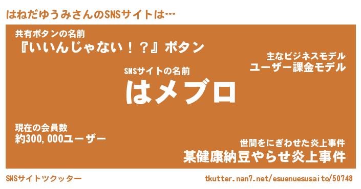 | ヘコむあだ名 | 『はねふぇ~』『豆乳』『はね太郎』 |