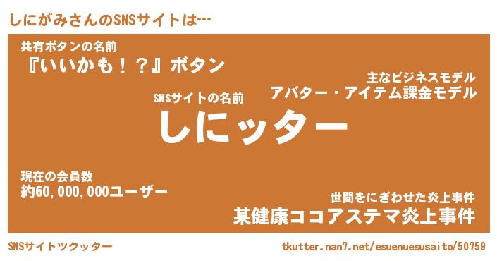 | 意味不明あだ名 | 『ペロリンしにがみ』『永久保存しにがみ』 |