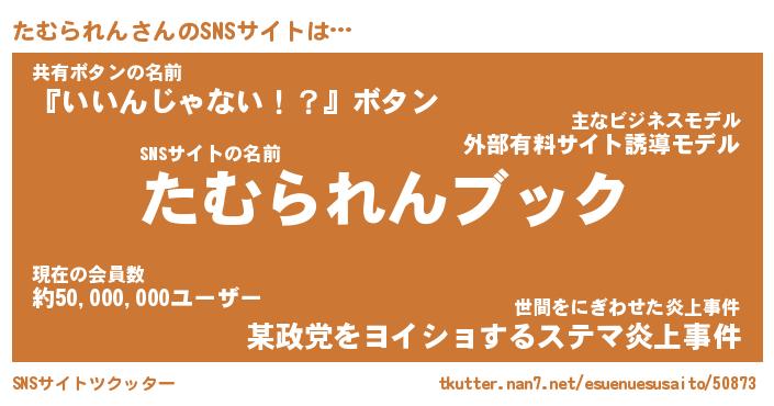 | 男性向けラノベタイトル風あだ名 | 『タムラレンアートオンライン』 |