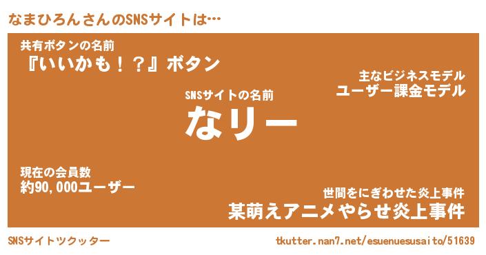 | ヒーロー風カッコイイあだ名 | 『スーパーナマヒロン』『炎刃騎士ナマ』 |