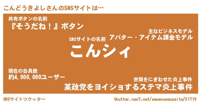 | 男性向けラノベタイトル風あだ名 | 『こんどうきよしの憂鬱』 |