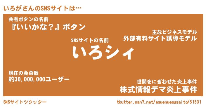 | 肩書あだ名 | 『いろが社長』『いろが国家主席』 |