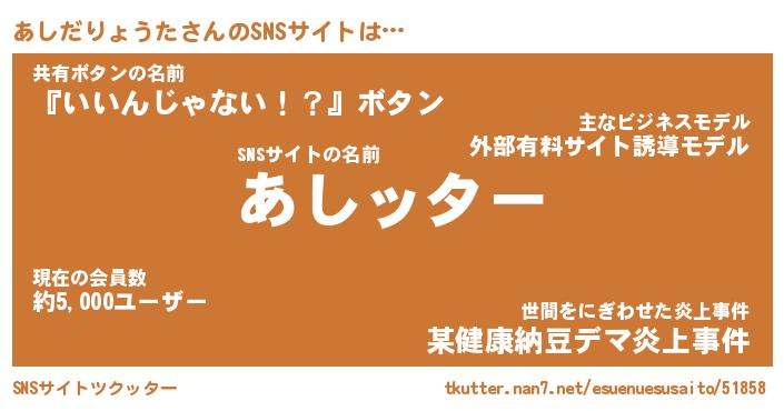 | 男性向けラノベタイトル風あだ名 | 『アシダリョウタアートオンライン』 |