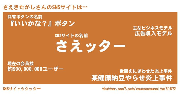 | 男性向けラノベタイトル風あだ名 | 『サエキタカシアートオンライン』 |