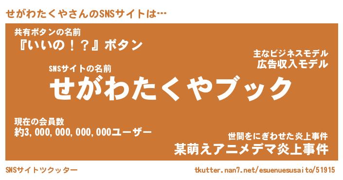 | 肩書あだ名 | 『せがわたくや御曹司』 |