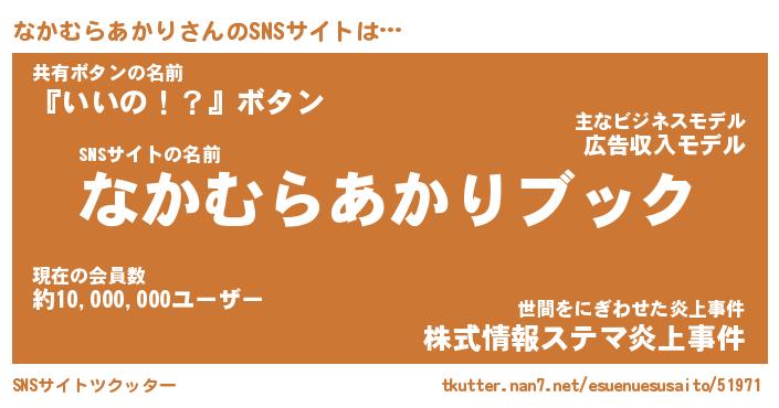 | 肩書あだ名 | 『なかむらあかり御曹司』 |