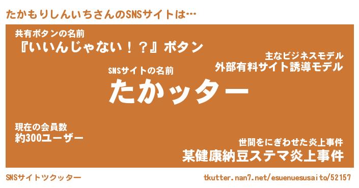 | 胡散臭い通販商品みたいなあだ名 | 『億万長者になれる霊験あらたかなお札…その名も「たかもりしんいち」』 |