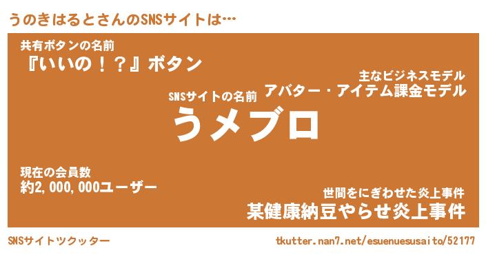| 男性向けラノベタイトル風あだ名 | 『ウノキハルトアートオンライン』 |