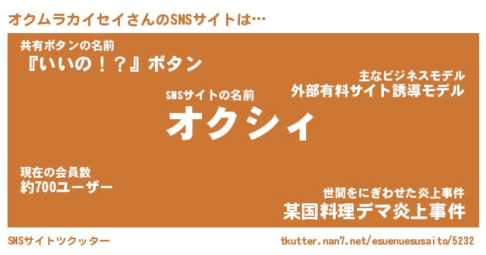 | 肩書あだ名 | 『オクムラカイセイ社長』 |