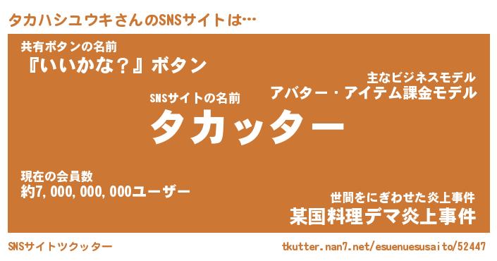 | 肩書あだ名 | 『タカハシユウキ社長』 |